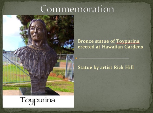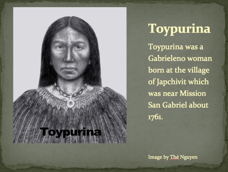 Victoria Bartolomea was a prestigious and powerful member of the Gabrieleno town “Comicrabit "on the outskirts of the pueblo of Los Angeles. Growing up in the San Gabriel Mission, Dona Eulalia Perez took Victoria under her wing and taught her the manners and traditions of a “fine Spanish Lady” (Hugo Reid Adobe). She married an Indian man, Pablo Maria and had four children with him. Hugo was immediately attracted to her and quickly went to the mission upon Pablo’s death in 1837. Being the daughter of the leader of the tribe, also known as the tomyaar, not only did she have power within the tribe but upon her marriage to the Scottish traveler Hugo Reid she gained indirect power within the European realm as well (McCawley 1996: 21).