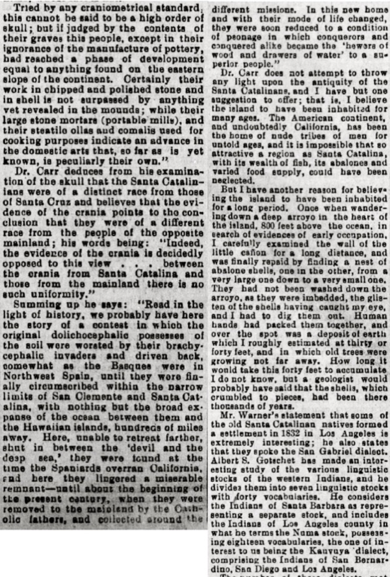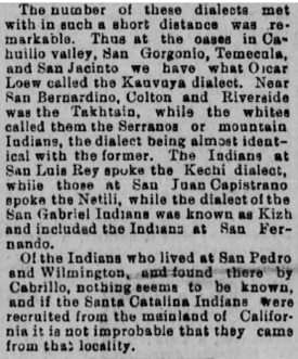 Hugo Reid wrote a series of letters to the Los Angeles Star Newspaper about the Gabrielenos and boldly stated that the mission Indians were not well. He documented their customs and highlighted their sufferings. It is assumed that his information about their way of life came directly from Victoria Reid and her family.