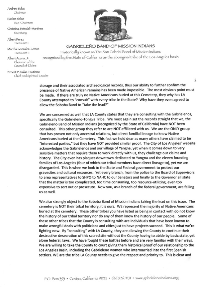 The Gabrieleño Band of Mission Indians continue to question the county's actions.